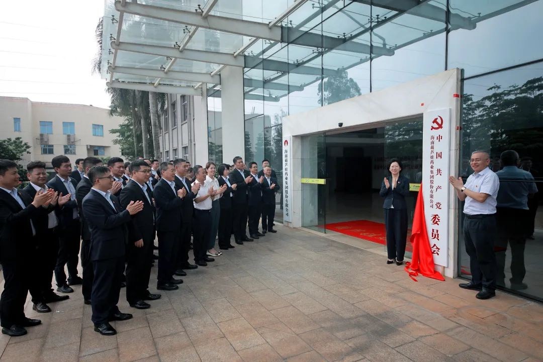 海口市高新区两新组织党委副书记傅爱萍宣读了《中共海口国家高新区非公有制经济组织和社会组织委员会关于同意成立中国共产党海南Stake官网药业集团股份有限公司委员会的批复》。